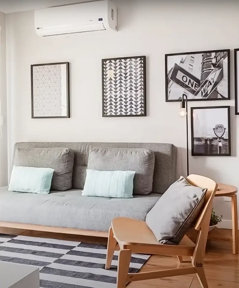 Se a sala é compacta, um sofá menor com poltronas pode ser mais funcional do que um sofá grande.