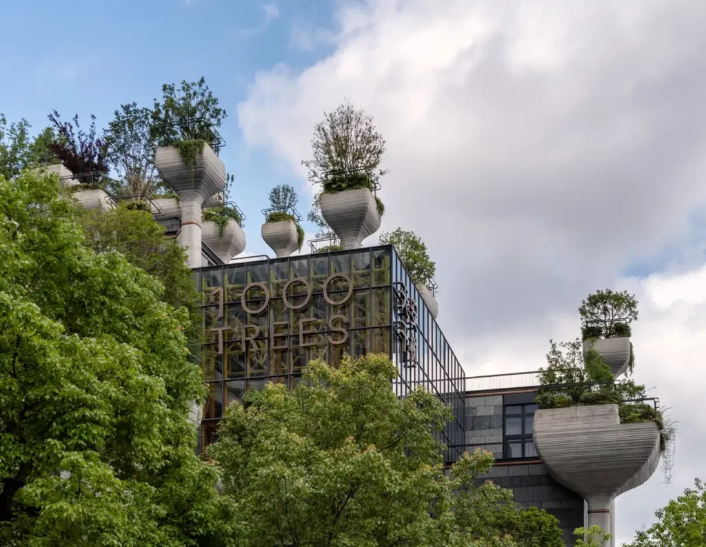 Localizado no bairro residencial de Putuo, no noroeste de Xangai, 1.000 Trees foi concebido para servir à comunidade de mais de 1,2 milhão de habitantes.