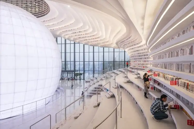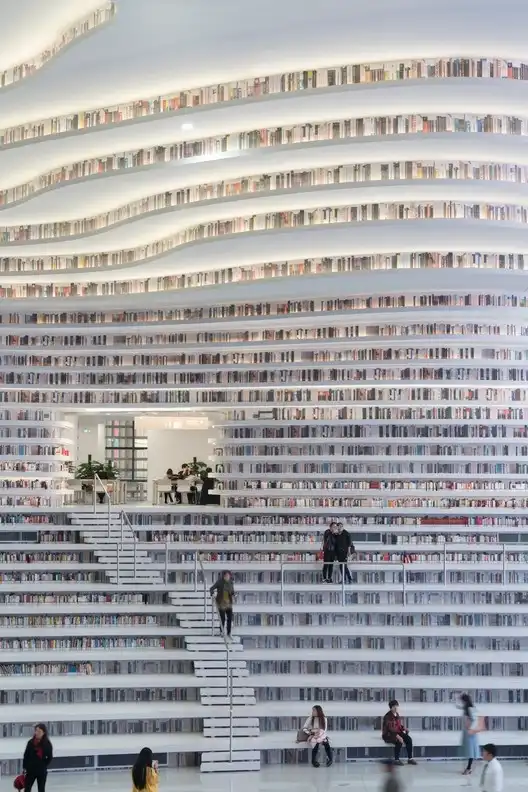 O MVRDV, em parceria com os arquitetos locais da TUPDI, concebeu a Biblioteca Tianjin Binhai, um espaço cultural de 33.700 m².