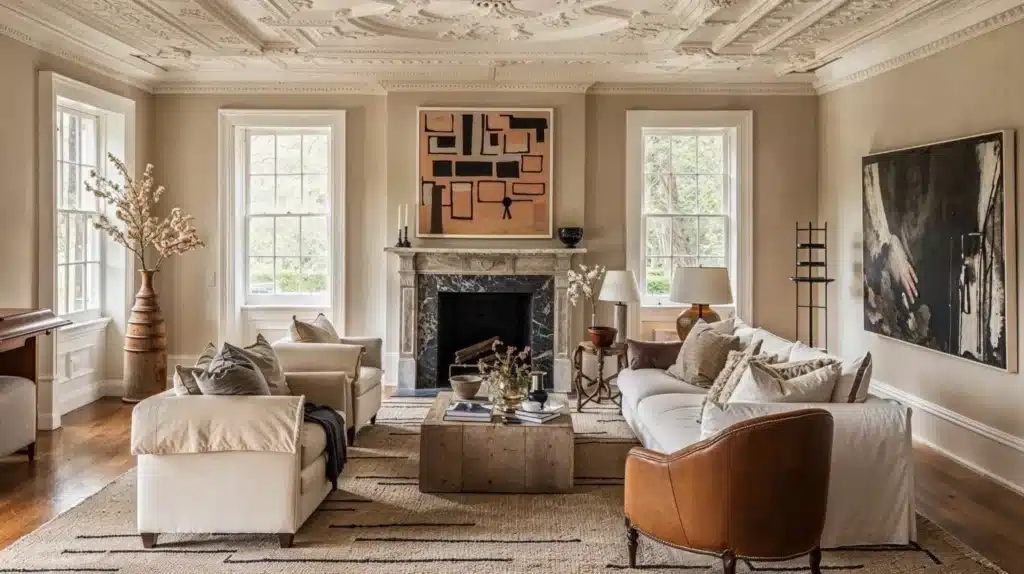 Tapetes, cerâmicas, luminárias e peças de madeira feitas à mão tornam-se elementos de destaque, reforçando a conexão com a cultura e a valorização do trabalho humano.