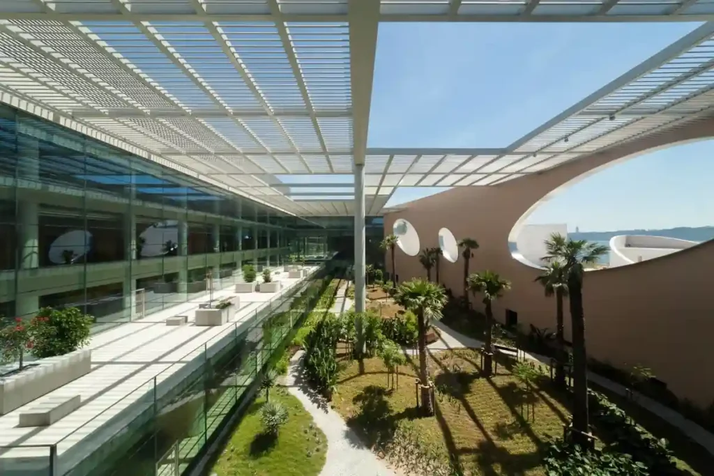 Não deixe de fazer uma parada no Centro Champalimaud do Desconhecido, cuja estrutura de pedra curva, com recortes circulares, é uma assinatura do renomado escritório de arquitetura Charles Correa Associates.