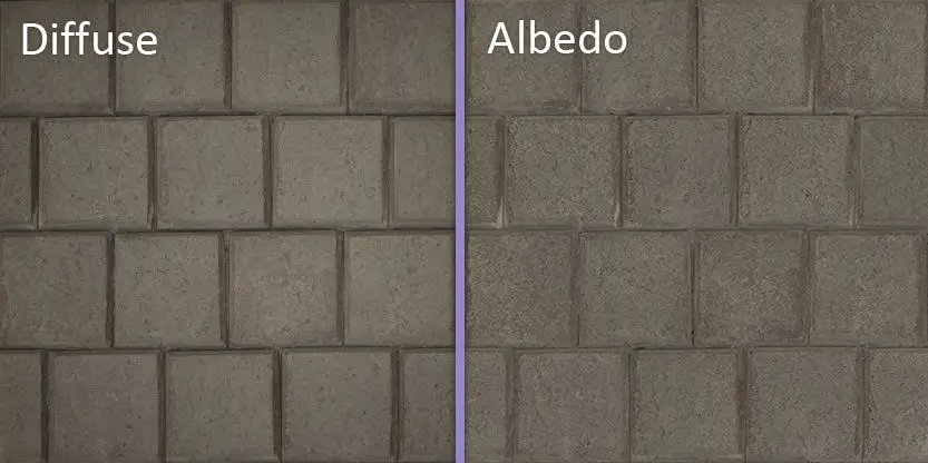 Já o Albedo map, representa a cor, mas leva em consideração a influência da luz ambiente.