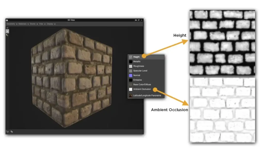 Na prática, o mapa de Ambient Occlusion é usado para aprimorar a iluminação de cenas 3D, especialmente em áreas onde a luz direta é menos predominante, como cantos, fendas e interseções entre objetos.