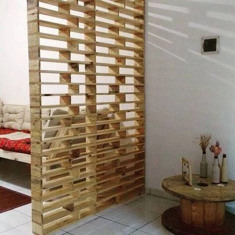 Se você precisa dividir um espaço em sua casa, os paletes de madeira podem ser uma solução prática e estilosa.