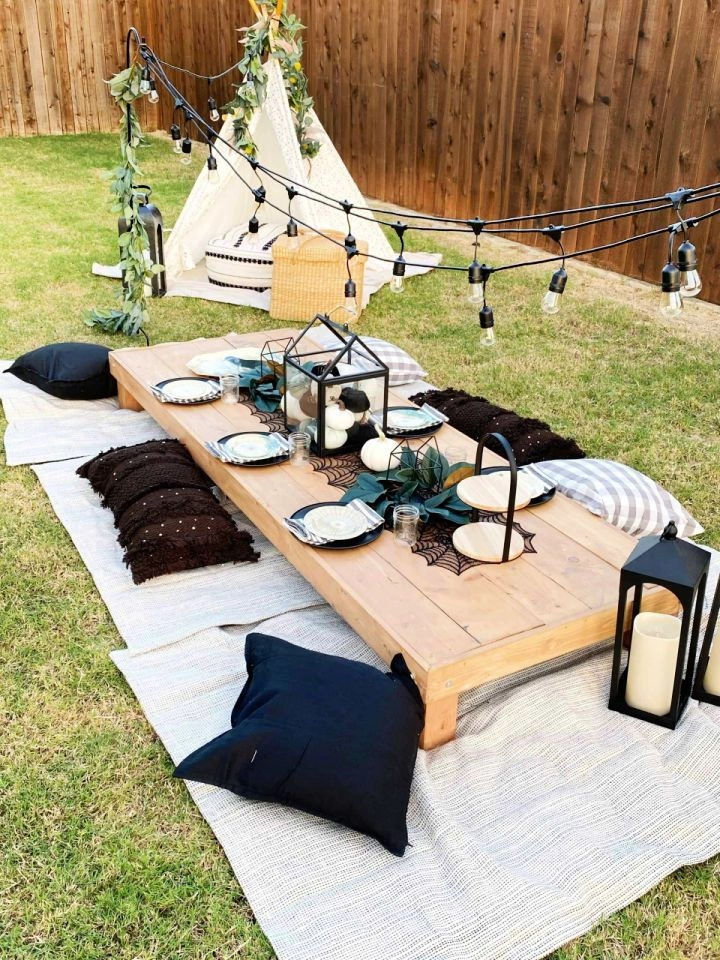 Junte algumas paletes e transforme-os em uma mesa de piquenique robusta e resistente.