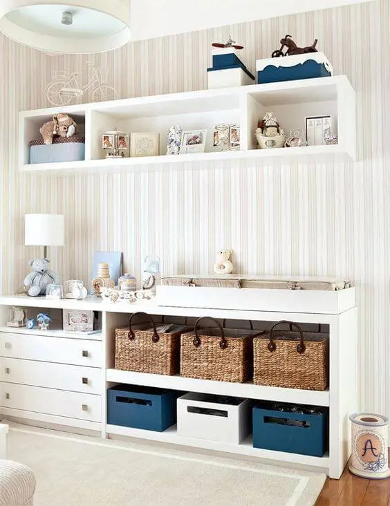 Cômoda ou armário: um armário ou cômoda adicional é útil para armazenar roupas extras, cobertores, brinquedos e outros acessórios do bebê.