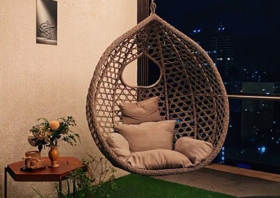 Decoração de varanda com balanço suspenso