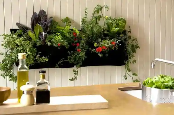 Além de alimentos deliciosos, um jardim vertical em apartamento, pode ser adornado com flores coloridas, samambaias, suculentas e heras, embelezando ainda mais o espaço.