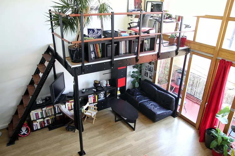 Embora não transforme sua kitnet em um duplex, é possível adicionar um escritório, um quarto ou até espaço extra de armazenamento, ajudando a definir e separar os ambientes inferiores.