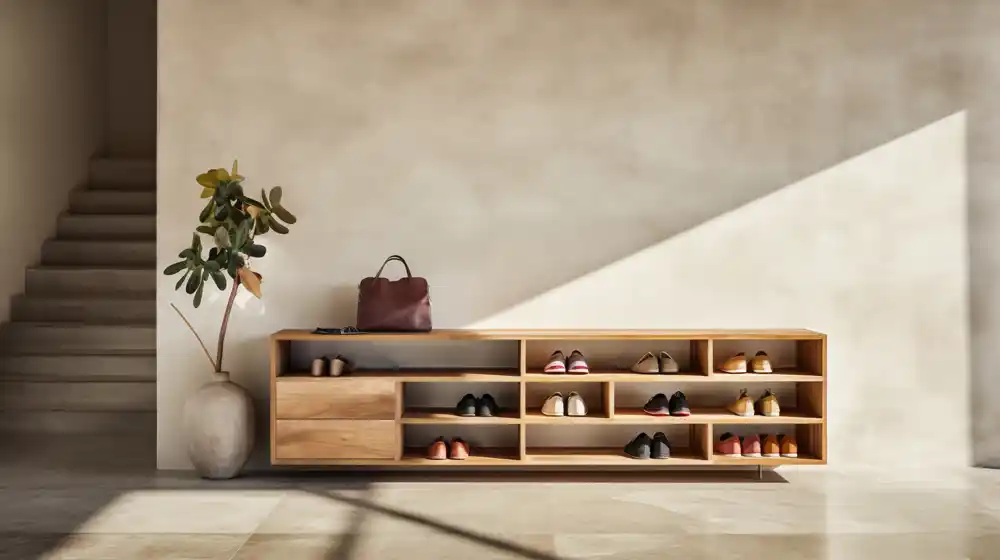 • Sala de Estar: Combine um sofá modular com um móvel lateral  e uma prateleira suspensas.
