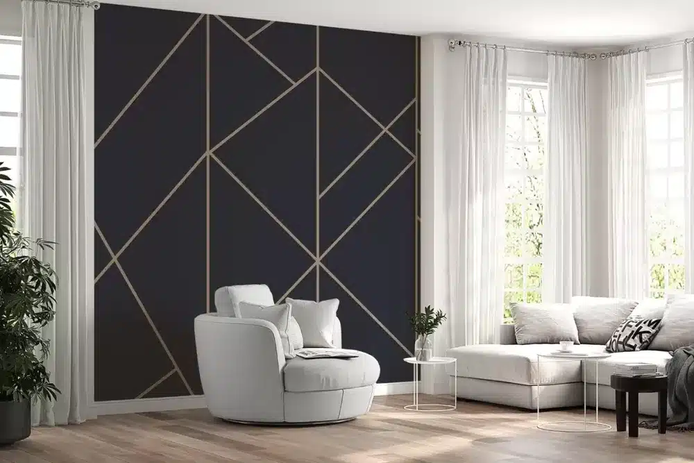 A pintura geométrica na sala de estar tem conquistado cada vez mais espaço no design de interiores.