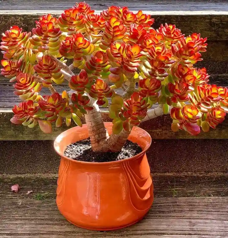 Planta de jade vermelha é relativamente fácil de cultivar, preferindo sol pleno ou sombra parcial e solo bem drenado.
