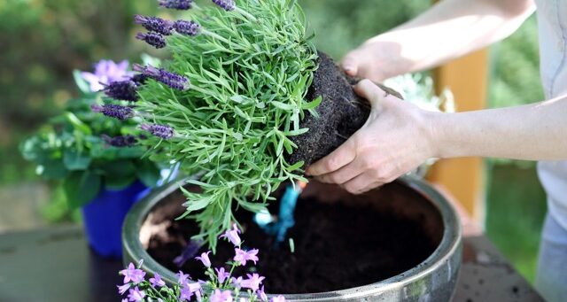 Se optar por levar a lavanda para fora durante a primavera, esteja ciente de que o solo secará mais rapidamente e, portanto, será necessário regá-la com maior frequência.