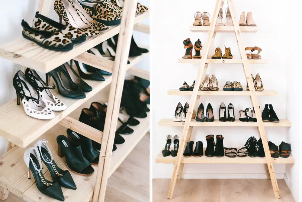 Uma escada antiga é uma ótima estratégia de organização para sapatos de salto alto.