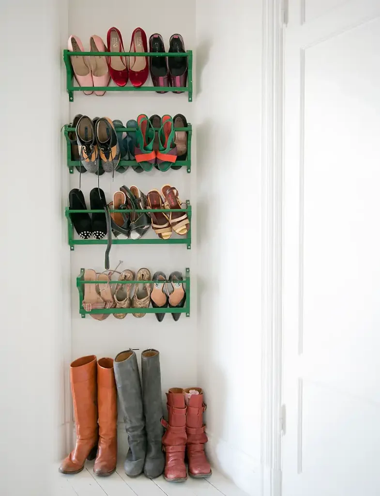 O melhor desse projeto DIY é que ele oferece dois níveis de armazenamento, ideal para quem tem muitos pares de sapatos.